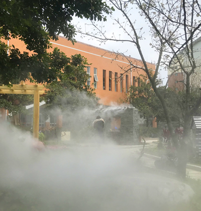 成都市花園國際小學源自有近百年悠久歷史的成都市實驗小學,創建于2002年,秉承名校深厚文化底蘊。結合當前的環境的污染對孩子造成較大的損害,學校領導為此添加人造霧系統對揚塵及溫度進行控制,為學校提供了重要的預防和治理的手段。