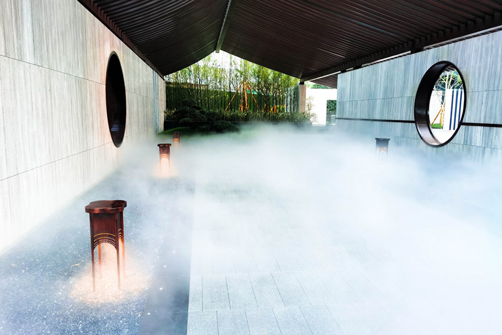 水景噴霧景觀,不僅呈現讓人驚喜并且能效高、成本低,還可以產生大量的負氧離子是有益于人類身心健康并且能與人類產生互動的景觀,增加整體園林的神秘感與靈性的同時體現出真正的中國山水風格。